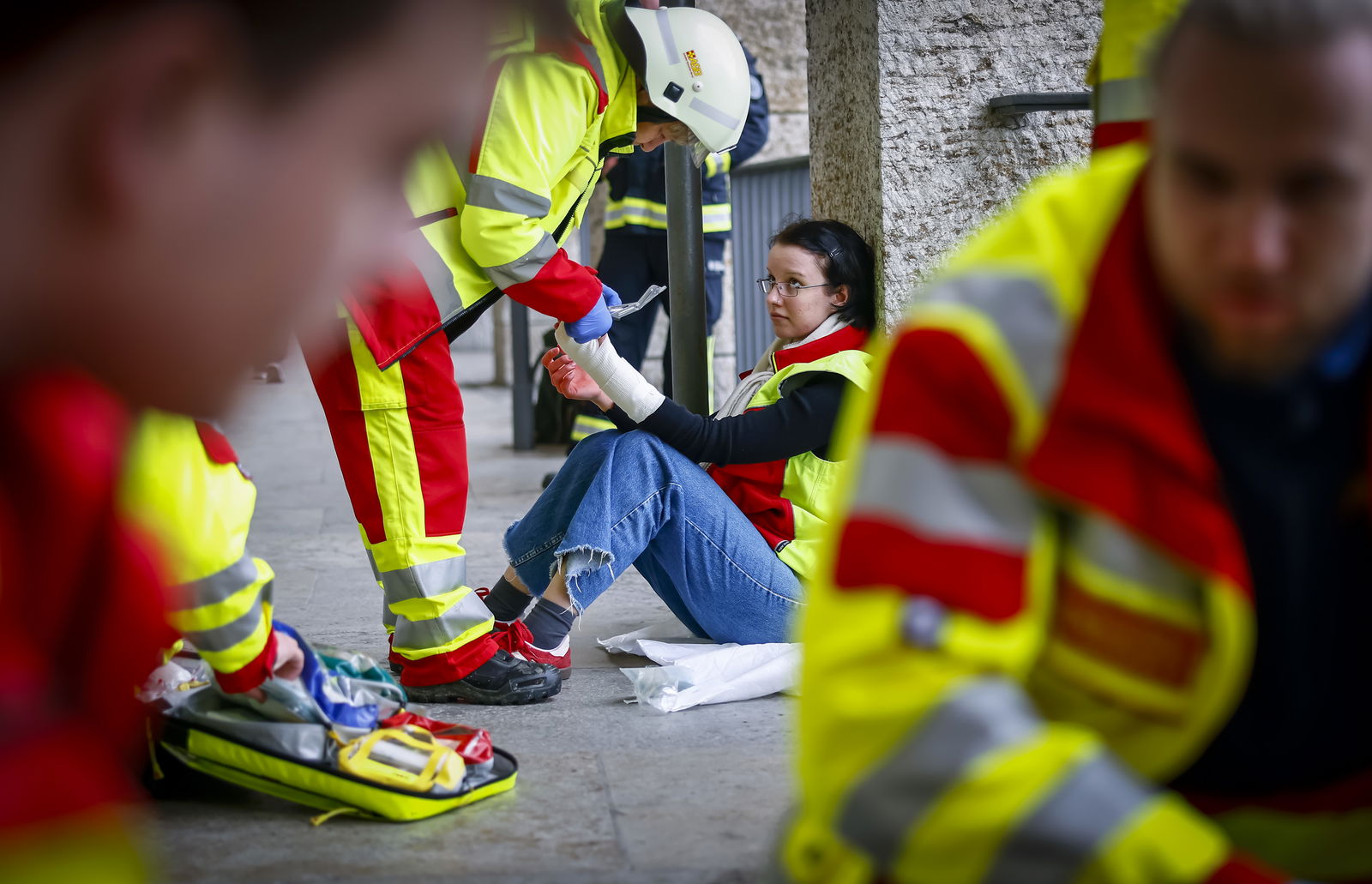 Übung mit Verletztendarsteller:innen für die UEFA EURO 2024.