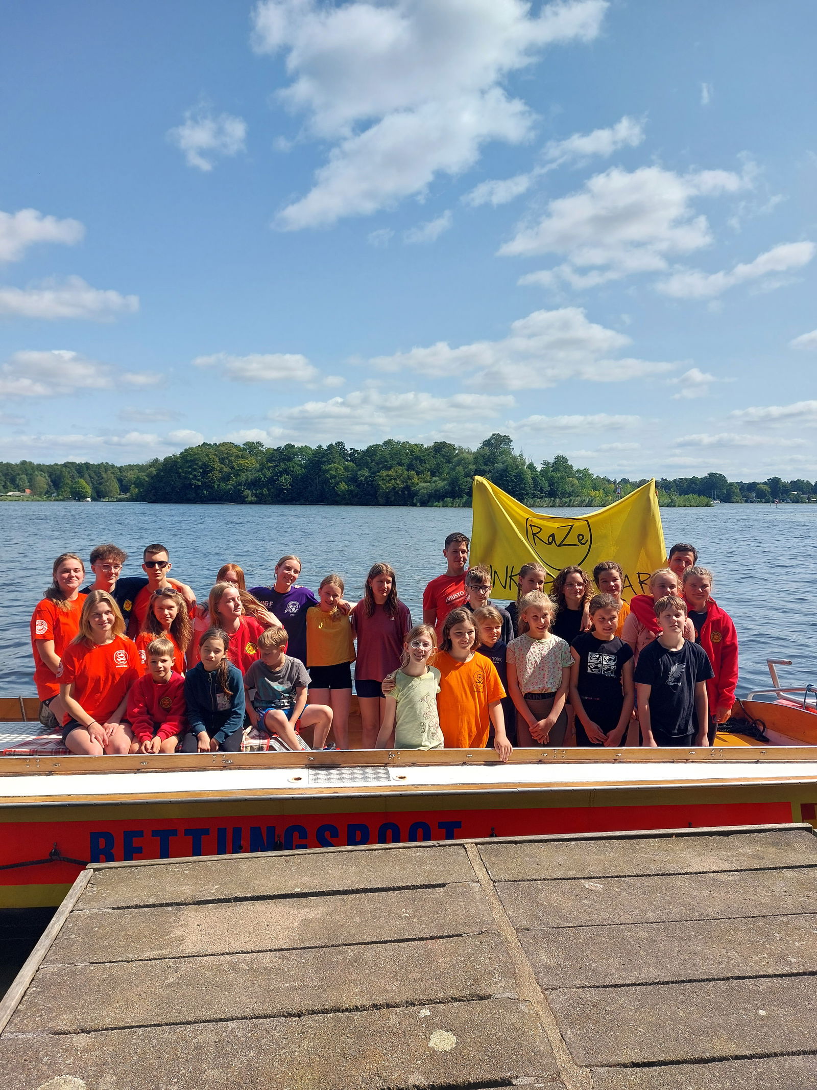 Die Ausbildung hat bei uns Tradition und Zukunft: Das Sommer-Trainingslager fand bereits zum 32. Mal statt. Knapp 80 Kinder und Jugendliche lernten auf fünf Stationen Schwimmen, Rettungstechniken, Erste Hilfe und Teamwork. Die Ausbildungsfahrt für angehende Bootsführer:innen im Dahme-Spree-Seengebiet war ein weiteres Highlight: 21 Teilnehmende übten in realistischen Szenarien alles vom „Mann-über-Bord-Manöver“ bis zum Großschadensfall. Unterstützt wurden sie von 33 Darstellenden und der Wasserschutzpolizei – insgesamt waren fast 90 Personen und 16 Boote beteiligt.